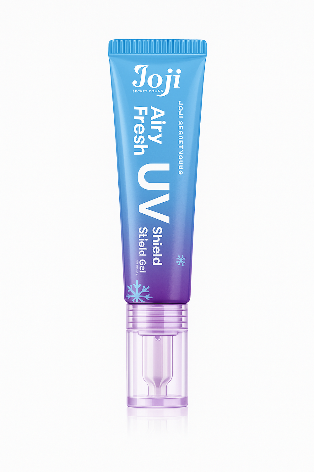 JOJI Secret Young Airy Fresh UV Shield Gel SPF50+ PA++++ 10g Sunscreen for the face, clear gel texture, light on the skin, giving fresh, cool skin with Skin Cooling innovation, helping to soothe skin that is burned by the sun, combined with Ceramide Complex, helping to strengthen the skin's protective barrier and nourish the skin from pollution, along with Mushroom Extract and Seaweed Extract, helping to add moisture to the skin and protect the skin from premature wrinkles, revealing smooth, clear, healthy-looking skin.